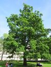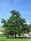 Pokrój korona początkowo bardzo luźna i smukła, ze stromo wzniesionymi, cienkimi, dość regularnie ułożonymi konarami, natomiast u starszych drzew silniej sklepiona o kulistym zarysie, z głównymi gałęziami odchodzącymi promieniście w górę. Osiąga 35 m wysokości.