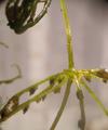 PokrójMały makroglon (zwykle do kilkunastu cm długości, choć wyjątkowo nawet powyżej metra) o silnie rozgałęzionej plesze. Cienka (0,3-1,2 mm średnicy) nibyłodyga i cienkich nibyliściach, krótszych od międzywęźli. Plecha od żywozielonej do szarozielonej, w zależności od stopnia inkrustowania węglanem wapnia, przez które jest delikatna i bardzo krucha. Roślina jednopienna. OkorowanieTrójrzędowe. Rzędy główne słabo przeważają nad bocznymi, choć częściej oba rodzaje są jednakowe. NibyliścieKrótkie (2–3 cm), zwykle nieznacznie krótsze od międzywęźli. W dolnych odcinkach wyraźniej krótsze, natomiast w pewnych warunkach dłuższe. Cienkie (0,5–0,7 mm). Proste, rzadko wygięte ku środkowi, sztywne. 6–9 w okółku. 6–12 członów, w tym dwa ostatnie zwykle nieokorowane. NibylistkiWewnętrzne wykształcone wyraźniej niż zewnętrzne. Zewnętrznych okółków często może wręcz nie być. Na płodnych nibyliściach wewnętrzne zwykle dłuższe od lęgni lub jej równe i cienkie, podczas gdy na zewnątrz słabiej wykształcone, brodawkowate. Na nibyliściach płonnych bardzo małe, brodawkowate. KolceJeżeli w ogóle występują, to bardzo małe, brodawkowate, tylko na szczytowych międzywęźlach. PrzylistkiZmienne. W dwurzędowych okółkach. Zwykle brodawkowate lub łuseczkowate (ledwo widoczne). Czasem w górnym okółku dłuższe (wałeczkowate), a w dolnym brodawkowate. PlemniePojedyncze. Zazwyczaj w trzech, czterech pierwszych węzłach nibyliści. Czerwonawe. Wyraźnie mniejsze od lęgni (0,5 mm średnicy). LęgniePojedyncze. Zazwyczaj w trzech, czterech pierwszych węzłach nibyliści. Ciemnozielone, ewentualnie białe (na głębszych stanowiskach). Koronka wydłużona, równowąsko zamknięta lub lekko rozchylona. 1,2 mm długości. Czarne oospory. ZmiennośćW wodach płytkich zwykle tworzy zwarte murawy, w głębszych wodach formy bardziej wydłużone, o dłuższych międzywęźlach, ale krótszych nibyliściach, podczas gdy formy wydłużone spotykane w łąkach innych roślin lub na silnie uwodnionym podłożu organicznym mają dłuższe nibyliście. Podobne gatunkiRamienica delikatna