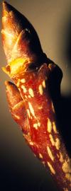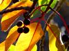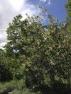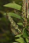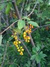 Gatunek krzewiasty, tworzący odrosty. Ma liście błyszczące o długości do 6 cm i szerokości do 3 cm. Owoce są ciemnoczerwone.