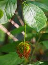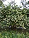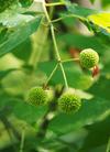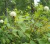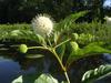 Morfologia W swoim naturalnym środowisku jest to drzewo, osiągające od 3 do 6 m, w Polsce dorasta do ok. 1,5–2 m. Posiada pokrój kulisty. Liście koloru zielonego, lancetowate o długości ok. 6–15 cm. Młode pędy są cienkie, czerwonawe, z małymi, naprzeciwległymi pąkami. Charakterystyczne są kuliste kwiatostany o średnicy ok. 3 cm, znajdujące się na wierzchołkach pędów. Składają się z drobnych, kremowobiałych, pachnących, obupłciowych, zrosłopłatkowych kwiatów. Owoce są drobne, bordowo-brązowe, dwunasienne, zebrane w kuliste owocostany. Siedlisko W swojej ojczyźnie rośnie na terenach podmokłych, bagiennych i obrzeżach zbiorników wodnych.