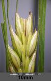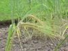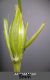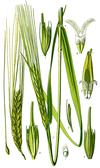 Roślina jednoroczna dorastająca do wysokości 1 metra. Kłos dwurzędowy, o długości 7–15 cm. Kłoski boczne są męskie, lub bezpłciowe i zazwyczaj zmarniałe i bezostne, płodny jest tylko kłosek środkowy. Jego ość ma długość do 15 cm. Osadka kłosa nie kruszy się, podczas dojrzewania odpadają z niej kłoski. Plewy o tej samej długości co plewki dolne, lub nieco krótsze. W Polsce kwitnie w czerwcu i lipcu.