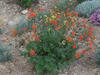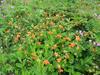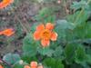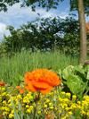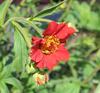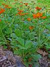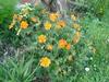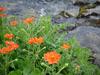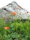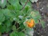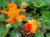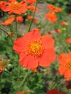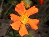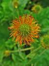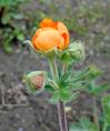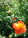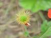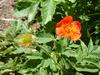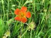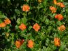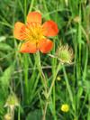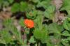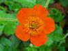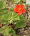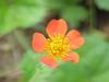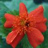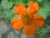 Kwiaty pojedyncze kwiaty wyrastają na długich szypułkach z kątów liści w górnej części łodygi. 6 trójkątnych, wydłużonych działek kielicha odgiętych w dół, pomiędzy nimi 6 bardzo wąskich, prostych działek. Korona o średnicy ok. 2 cm, złożona jest z 6 pomarańczowoczerwonych, wolnych płatków bez paznokcia, o szeroko owalnym kształcie, wyciętych na szczycie. Pręciki bardzo liczne, słupek jeden z bardzo licznymi, nitkowatymi szyjkami. Roślina kwitnie od maja do czerwca, jest owadopylna, w jesieni często powtarza kwitnienie, ale drugi raz kwitnie już słabiej.