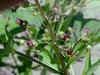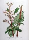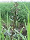 Kwiaty kwiatostan szczytowy, wiechowaty. Szypułki ogruczolone. Kielich o pięciu działkach, szeroko (ponad 0,5 mm) błoniasto obrzeżonych. Korona czerwonobrunatna, u nasady żółtawozielona, o pięciu łatkach, 6-8 mm długa. Pręciki cztery, prątniczek odwrotnie sercowaty.
