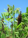 roślina ozdobna sadzona jako żywopłot do wzmacniania brzegów (stawów, rzek itp.), do ochrony gleby przed erozją do obsadzania nieużytków w ogrodnictwie sadzona dla odstraszania owadów szkodników wykorzystywana do produkcji koszyków i gąsiorów (zwłaszcza we Włoszech w latach 50. XX wieku) strąki wykorzystywane są w Bułgarii w przemyśle perfumeryjnym i farmaceutycznym w Ameryce Północnej dawniej otrzymywano z niej barwnik będący namiastką indyga (ekstrahowanego z indygowca barwierskiego)Gatunek uznawany jest za jeden z najbardziej miododajnych krzewów strefy umiarkowanej o wydajności miodowej wynoszącej do 80 kg/ha. Obnóża z pyłku amorfy mają charakterystyczną ceglastą barwę.