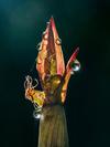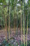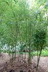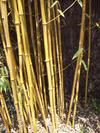 Pędy żółtozielone z upływem czasu w bruzdach przebarwiają się na kolor żółty. Na stanowiskach naturalnych dorasta maksymalnie do wysokości 10 m przy średnicy pędów 1–4 cm, które czasami w dolnej części nie rosną prosto tylko w formie fantazyjnych zygzaków. Pochwy pędowe paskowane bez plam lub z nielicznymi plamami. Liście ciemnozielone długości 5–17 cm.