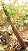 Pędy początkowo ciemnozielone, jaśniejące wraz z upływem czasu, stosunkowo grube z białym pierścieniem pod węzłami. Gałązki krótkie, gęsto pokryte drobnymi liśćmi. Długość liści 4–6 cm, przy szerokości około 1 cm. Na naturalnych stanowiskach osiąga wysokość 8–12 m, przy średnicy pędów 5–8 cm.