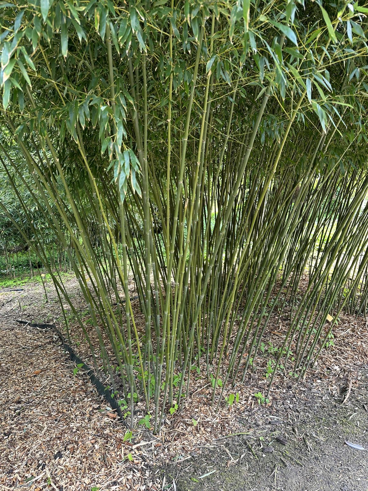 Pędy początkowo ciemnozielone, jaśniejące wraz z upływem czasu, w początkowej fazie pokryte białym nalotem. Pochwy pędowe lekko paskowane, ale bez plam. Na naturalnych stanowiskach osiąga wysokość 6-7 m, przy średnicy pędów 2-2,5 cm.