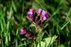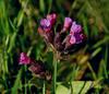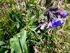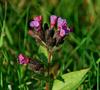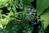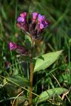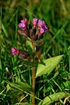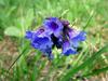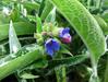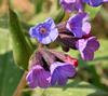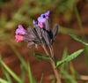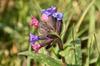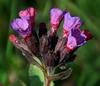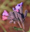 Kwiaty zebrane są po 1–5 w rozgałęzione, gruczołowato owłosione, gęste wierzchotki, z których każda zawiera po 10–40 pojedynczych kwiatów. Kwiatostany osadzone są na szypułkach o długości 2,9–5,8 mm. Kielich mierzy 7,1–11,9 mm długości, ma długie ostro zakończone klapy (o długości 1,5–3,8 mm), z wcięciami między nimi niemal do połowy jego długości. Korona kwiatu ma lejkowaty kształt i 10,2–15,2 mm długości, składa się z 5 płatków, początkowo mają różowoczerwoną barwę, lecz z czasem stają się niebieskie lub fioletowe, mają 5 wiązek włosków w gardzieli tworząc pierścień. Nitki pręcików osiągają 1,5–2 mm długości, a pylniki są długie na 1–2 mm. Owocolistki są silnie skompresowane.