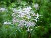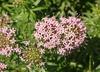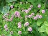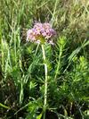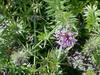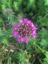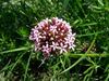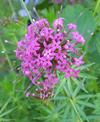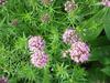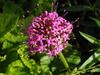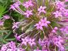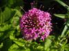 Kwiaty obupłciowe, siedzące, zebrane w główkowaty, szczytowy kwiatostan wsparty wolnymi, lancetowatymi listkami u nasady o długości do 12 mm. Kwiatostan ma kształt półkulisty do niemal kulistego i średnicę do 3 cm. Kielich silnie zredukowany. Korona kwiatu różowoliliowa, u form uprawnych do różowopurpurowej, z rurką długości do 15 mm i pięcioma rozpostartymi łatkami o długości 3 mm. Pręcików pięć, o krótkich nitkach, schowane w rurce korony. Zalążnia gładka, dwukomorowa, w każdej z komór z pojedynczym zalążkiem. Szyjka słupka długa, daleko wystająca z rurki korony, maczugowata, karmazynowa, na szczycie płytko wycięta.