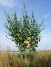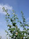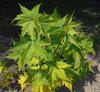 Roślina wytwarza zwarte i silnie ukorzenione kępy składające się z kilkunastu do kilkudziesięciu łodyg o średnicy 5-30 mm. W sprzyjających warunkach wysokość rośliny przekracza 4 metry. Liście dłoniasto-klapowate o dużej zmienności kształtu i wielkości.
