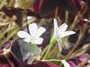 PokrójRoślina zielna, bylina osiągająca 15–20 cm wysokości. ŁodygaŁuskowate, kruche kłącze o krótkich rozłogach. LiścieTrójlistkowe, cienkie, długoogonkowe, o ciemnopurpurowej barwie z delikatnym, charakterystycznym, jaśniejszym rysunku wewnątrz liścia. Kształtem przypominają swym wyglądem duże, kanciaste liście koniczyny, stąd nazywana jest „koniczynką szczęścia”. KwiatyKwiaty promieniste, nieco dzwonkowate, o symetrii 5-krotnej. Zebrane w luźne, dłuższe od liści kwiatostany posiadające 3 do 7 kwiatów. Pojedynczy kwiat pięciopłatkowy, delikatny, o średnicy ok. 1 cm. Płatki barwy białej lub jasnoliliowej, z zielonożółtą plamką i takimiż żyłkami widocznymi tylko u nasady. Działki kielicha krótkie, zrosłe nieco u nasady, pojedynczy słupek z główkowatym znamieniem i 10 pręcików. OwoceWydłużona, naga, 5-kanciasta torebka. Nasiona jajowate o zaostrzonych końcach.