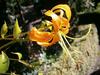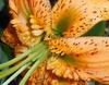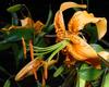 Kwiaty kwiatostanem jest grono, złożone z 2–20 zwieszonych, bezwonnych kwiatów, zebranych po dwa na każdej osi bocznej. Niezróżnicowany na kielich i koronę okwiat składa się z sześciu pomarańczowych, mocno wywiniętych na zewnątrz, lancetowatych, mierzących 5–8 cm na 1–2 cm listków z krótkim paznokciem. Przy nasadzie listków okwiatu zielone miodniki, którym towarzyszą rzadkie, ciemne plamki i długie brodawki. Pręciki 4,5–5 cm długie, z pomarańczowymi pylnikami o długości 1,2–1,7 cm; szyjka słupka długości ok. 5 cm, zalążnia ok. 1,5 cm.
