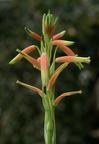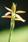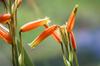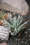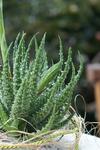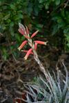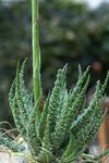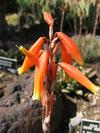 Rośliny bezłodygowe, tworzące kępy. Różyczka liściowa, o średnicy około 6 cm, składa się z 20–30 zielono-sinych liści o długości 10 cm i szerokości 1,2–1,8 cm, wzniesionych lub zakrzywionych, jajowato-lancetowatych, o bardzo ostrych wierzchołkach, po obu stronach pokrytych guzkami i miękkimi, białymi kolcami oraz brzegach pokrytych białymi, miękkimi ząbkami o długości 2–3 mm. Kwiaty zebrane w gronowaty, cylindryczny kwiatostan o długości 10 cm, który wyrasta na pędzie kwiatostanowym ponad rozetę liściową. Szypułki i podsadki o długości około 3 cm. Okwiat pojedynczy, cylindryczny, lekko wybrzuszony w środkowej części, o długości 3,5–4,2 cm, pomarańczowo-czerwony do pomarańczowego. Listki okwiatu wolne na długości 2,3–2,8 mm. Pręciki i szyjka słupka ledwie wystają ponad brzeg okwiatu. Kwitnie wiosną. Często tworzy mieszańce z innymi gatunkami aloesu.
