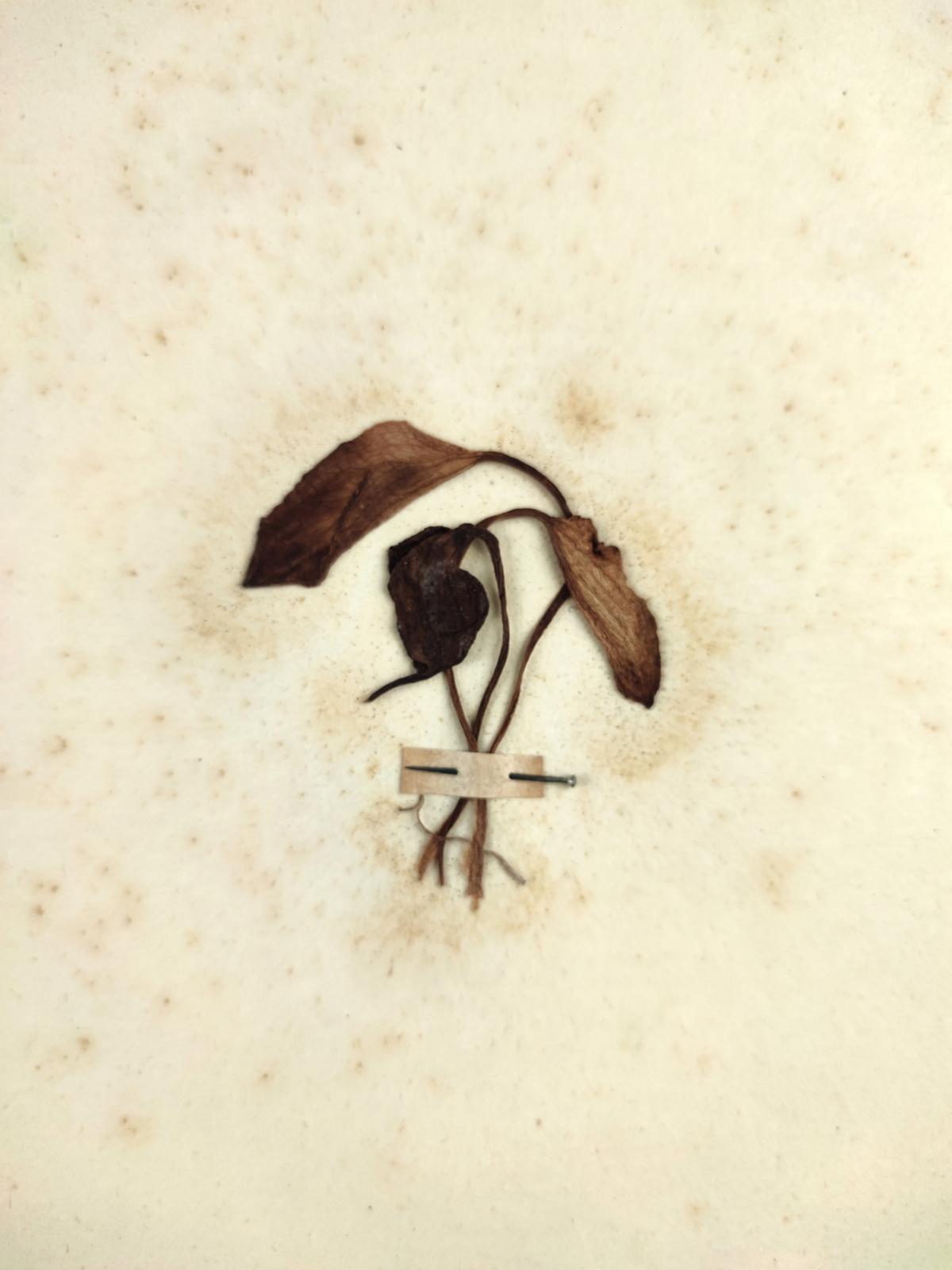 Liście roślina tworzy od 2 do 4 gładkich, rozwartych liści o długości od 2 do 4 cm, przylegających do podłoża.