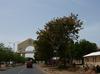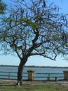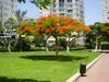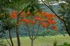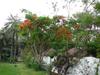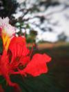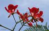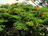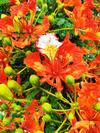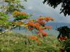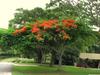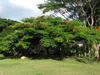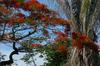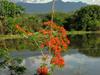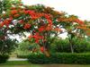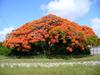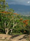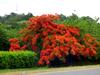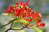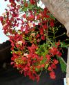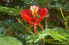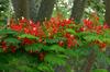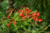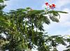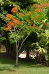 Jest to drzewo o wysokości do 9 m z szeroką, kopulastą koroną o średnicy do 18 m. Ma ciemnozielone, podwójnie pierzastodzielne liście. Bardzo obficie zakwita pomarańczowoczerwonymi kwiatami. Jeden płatek w tych kwiatach jest biały z żółtą lub czerwoną plamką. Są duże (mają średnicę do 15 cm), a roślina kwitnie od wiosny do lata. Owocem jest ciemnobrązowy strąk o długości do 60 cm. W okresie suszy traci liście.