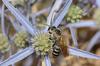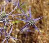 Bylina o bardzo rozgałęzionych pędach. Cała ma niebiesko-fioletowy kolor. Rośnie w zbiorowiskach roślinnych typu frygana, na opuszczonych polach uprawnych i ogrodach, na poboczach dróg, na pustyniach. Osiąga wysokość 25–100 cm. Liście wydłużone, z kolcami po bokach. Kwiaty niebiesko-białe, zebrane w kuliste, rozproszone na roślinie główki. Kwitnie od maja do sierpnia. Owoce o kształcie od eliptycznego do odwrotnie jajowatego