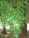 Drzewo dorastające do 7 m wysokości posiada liście jajowate lub jajowatolancetowata. Brzeg liścia lekko falisty, w początkowym okresie czerwonawy. Kwiaty białe, małe, pachnące i pojedynczo umiejscowione w kątach liści. Owocem jest jagoda dorastająca do 4 cm średnicy, okrągława i żebrowana o kolorze od wiśniowej, po ciemnoczerwoną, niekiedy do prawie czarnej barwy. Owoc zawiera 2-3 nasiona.
